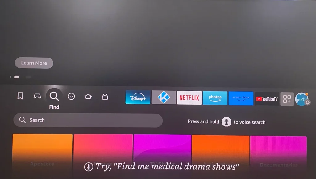 2. Click the Find > Search option on the home screen of FireStick